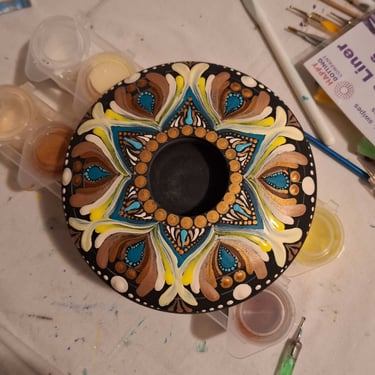Nakit z ročno narisanimi mandalami je ustvarjen kot oseben spremljevalec, ki nosi simboliko in energijo določene mandale. Vsak kos je unikaten in nastaja z občutkom, skozi barve in oblike, ki nagovorijo posameznika. Mandala na nakitu podpira notranje ravnovesje ter se povezuje z lastnim občutkom in namenom.