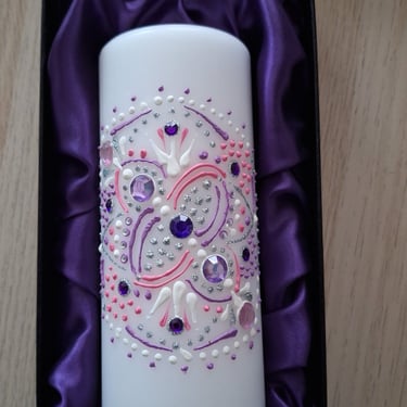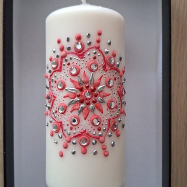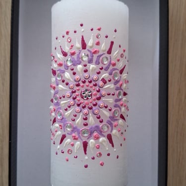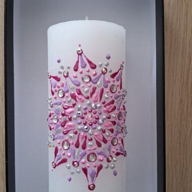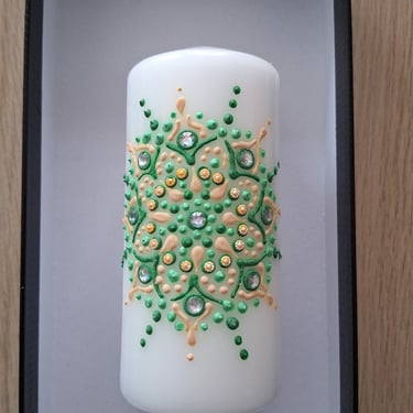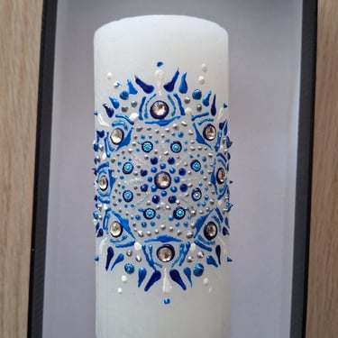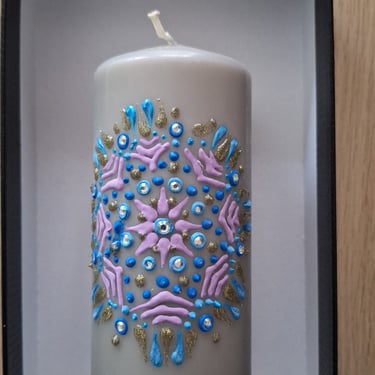 Sveče z ročno narisanimi mandalami in dodanimi kristalčki so namenjene ustvarjanju mirnega, toplega prostora za sprostitev in umiritev. Ob prižigu mandala zažari v svojem polnem izrazu ter povabi v trenutek prisotnosti. Vsaka sveča je ustvarjena z namenom, da podpira osebni ritual, meditacijo ali preprost trenutek zase. Ob vsakem prižigu sveče lahko dodaste svoj namen transformacije.